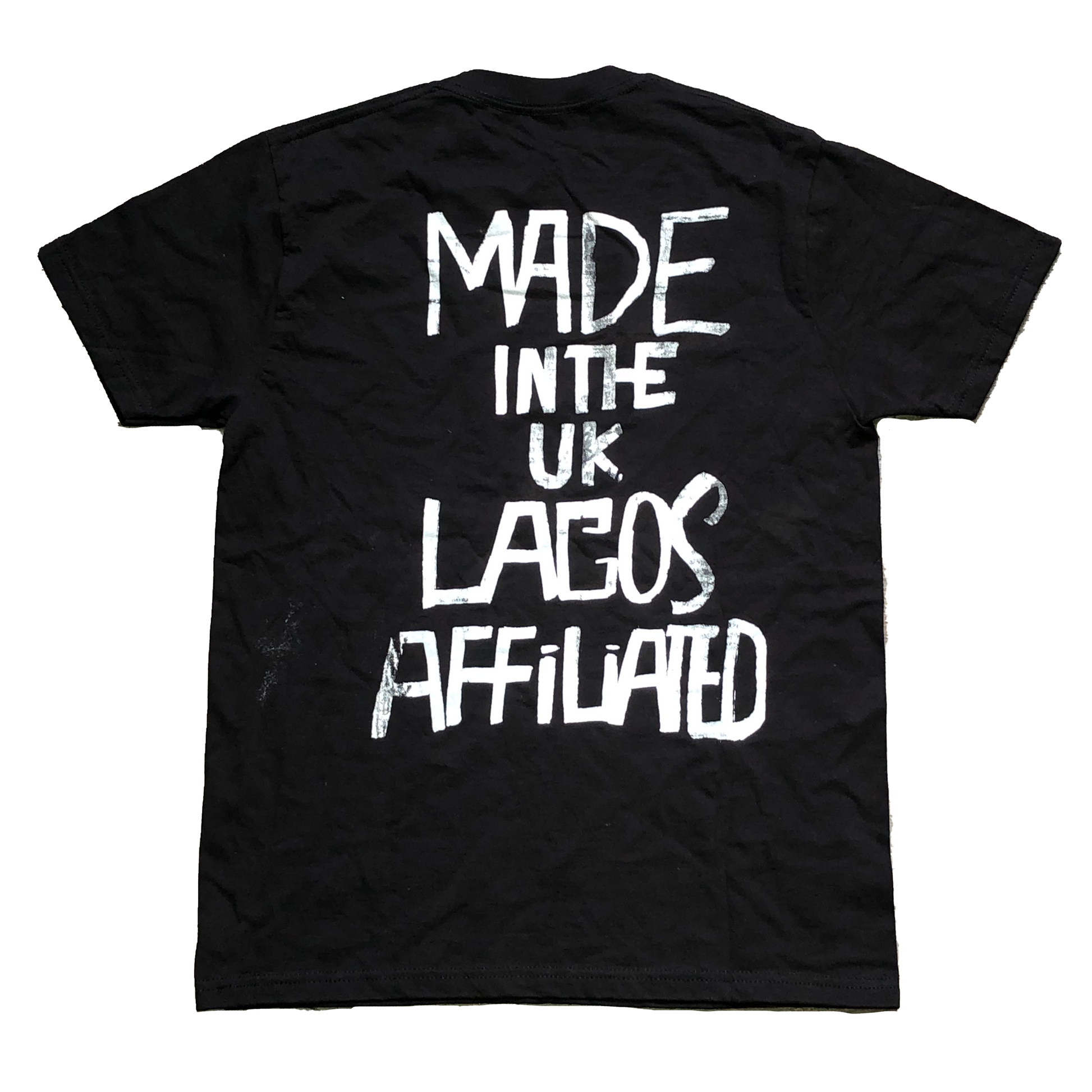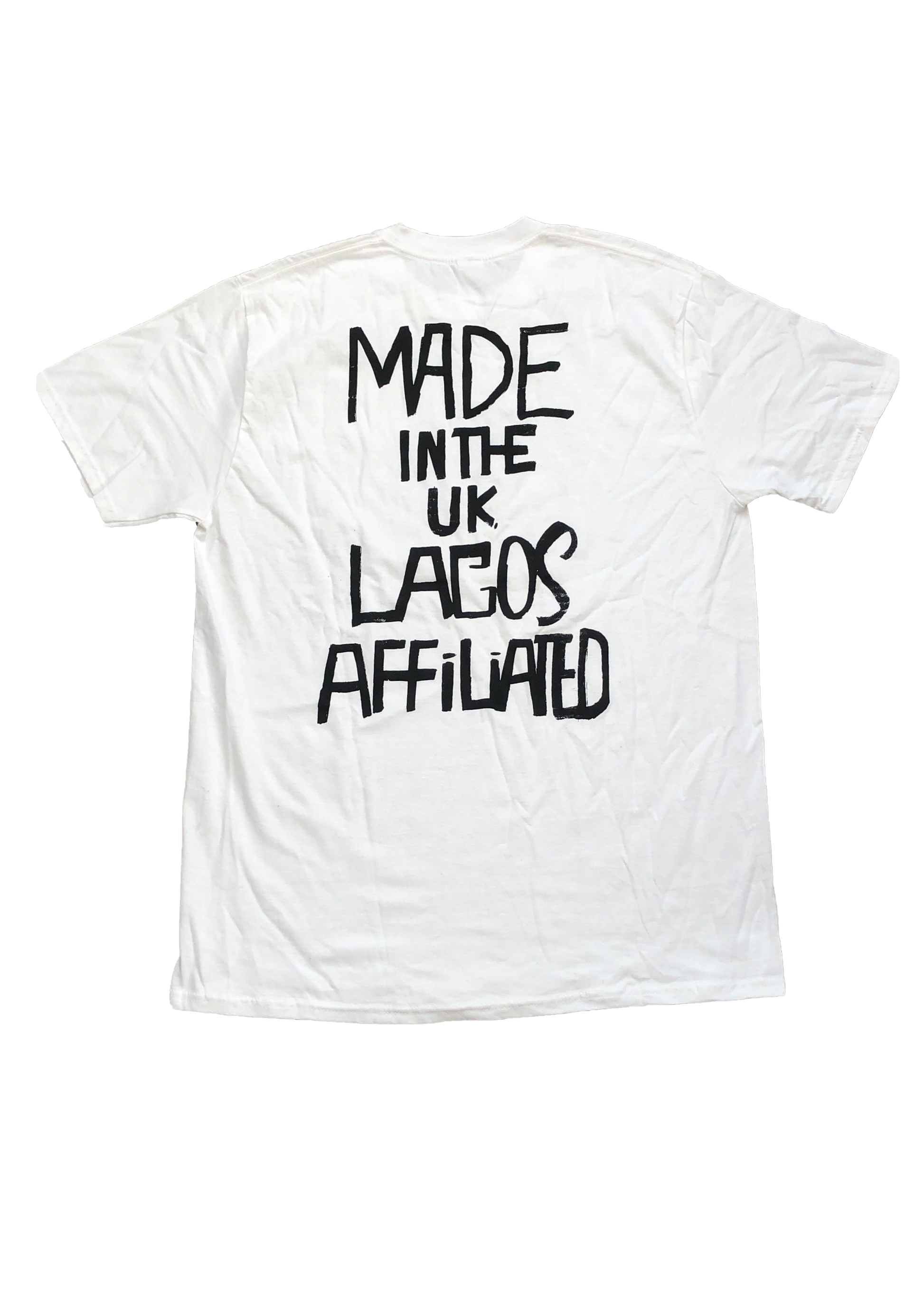 Made In The U.K tee has the outline map of the country Nigeria with "From The Sole" wriiten around it. The back of the shirt has "Made In The U.K, Lagos Affiliated" written in bold to show a statement. Comes in White, Black and Blue